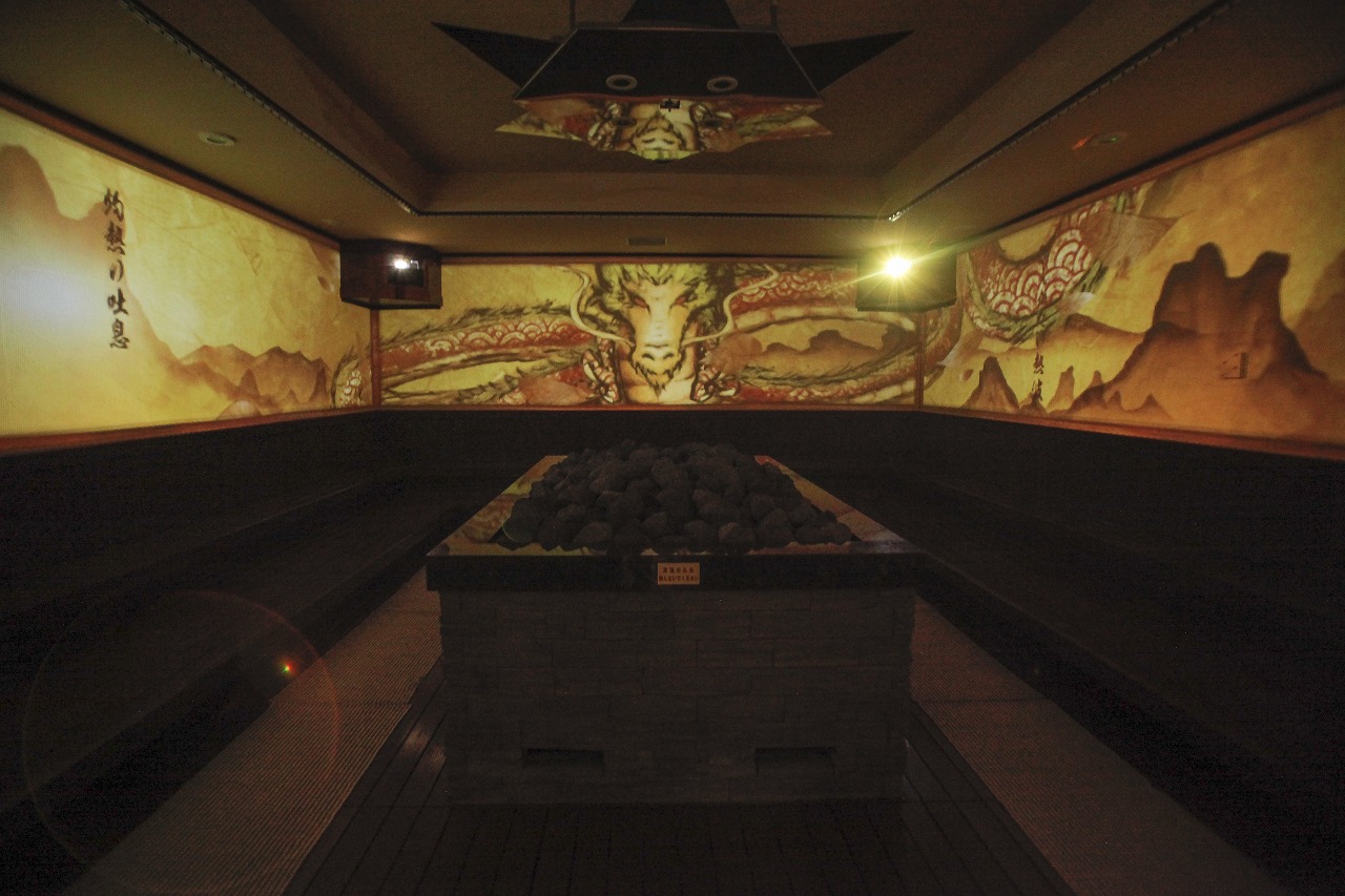 スーパー銭湯の岩盤浴室でプロジェクションマッピング!?