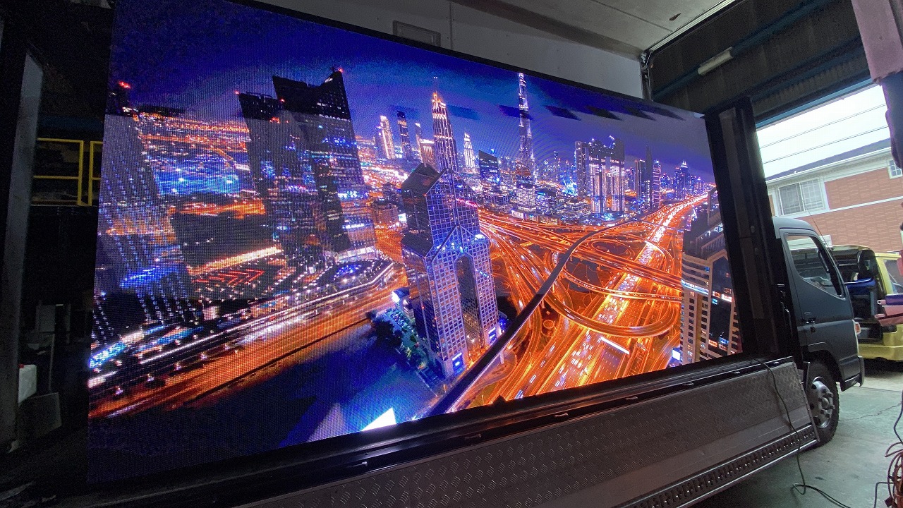 LEDビジョンを搭載したLEDビジョンカーを製作させて頂きました。LEDビジョンの反対側はキッチンカーとスタジオにもなっており、様々なイベントで活躍しています。