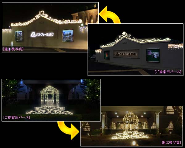 結婚式場やホテルの外観イルミネーション演出などへおすすめです。