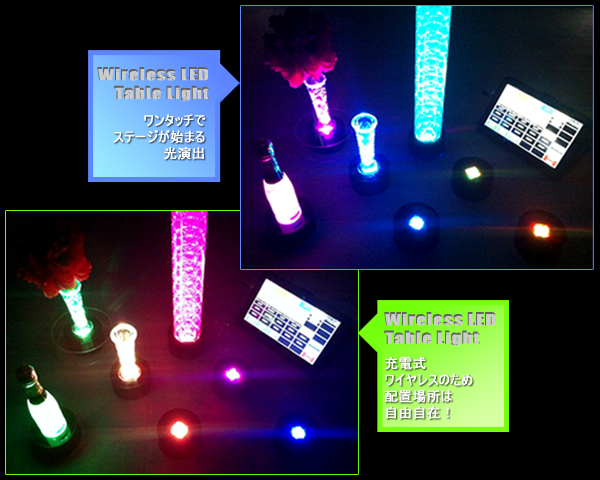 LEDテーブルライト本体 / 専用充電器 / DMXコントローラー / ワイアレストランスミッタ―