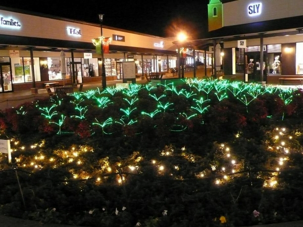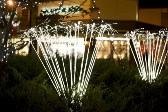 アーケードにはシンプルなイルミネーション装飾で、景観に馴染んだ華やかな演出。花壇植栽には色変化が美しい光ファイバーの草原とLEDの光が融合された慎ましい美のあるイルミネーション装飾。